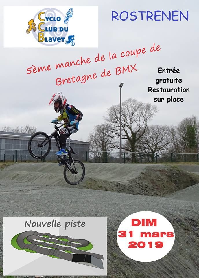 INVITATION ROSTRENEN Coupe de Bretagne Publié le 19 mars 2019 par BMX Theix Publicité Dimanche 31 mars aura lieu la 5ème Coupe de Bretagne à Rostrenen. Merci de vous inscrire par mail à frederic.aubin4@wanadoo.fr avant le mardi 26 mars au soir.