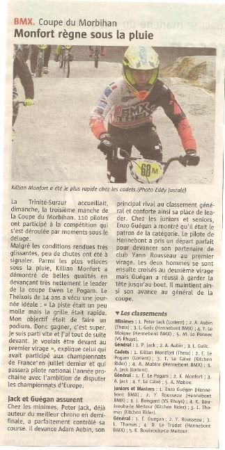 - En minime : Adam AUBIN finit à une belle 2ème place, Antoine LE MEILLOUR finit 6ème et Kylian TREBOSSEN s'arrêtera après les manches.