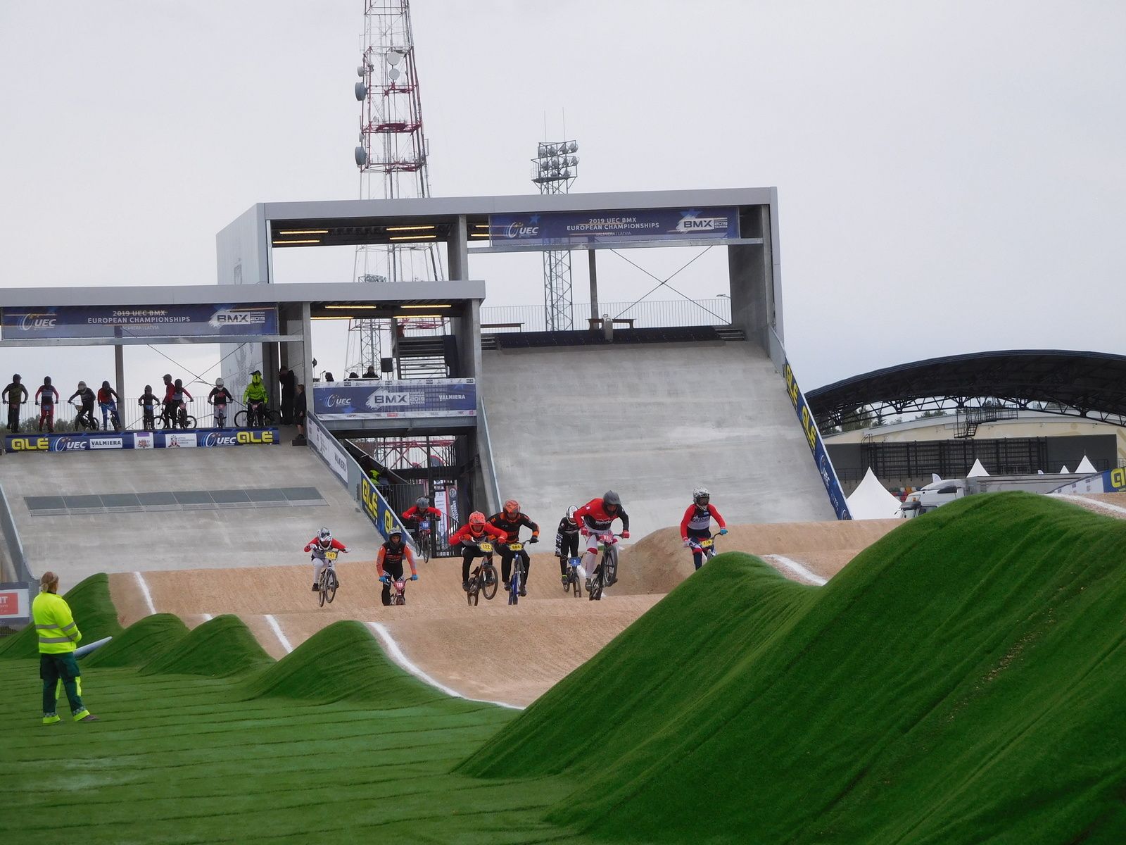 Après une journée de visite de la Capitale de la Lettonie, Riga, de nouveau 2 jours de voyage pour redescendre vers la Hollande où Adam AUBIN et sa famille se posent une journée pour récupérer avant la grosse échéance. Une petite séance de roulage sur la piste de Luyckgestel et installation du campement à la piste de Zolder. Première séance d'essais le dimanche sans problème. Approfondissement du travail le deuxième jour d'essais afin de peaufiner les passages techniques qu'exigent cette piste. La chaleur s'installe un peu plus chaque jour. Jour J arrive. 7h30, début des warp-up avec un tour de piste sans grille pour se mettre en route. 8h45, début de la première manche. Adam fait 1er, bon début. 1h30 plus tard, la deuxième manche avec de nouveau une 1ère place. La chaleur commence déjà à agir sur les organismes et au fur à mesure des courses, les chutes se multiplient et les secours n'arrivent plus à évacuer les blessés. Pause de 40 minutes. La troisième manche arrive et Adam fait 2. Fin des manches à 15h. Face à la chaleur, aux nombre de blessés et malaises de spectateurs, l'organisation prend la sage décision de stopper la compétition et de la reprendre à 18h. Le temps pour Adam d'aller prendre une douche. Mais il faut se remobiliser pour aborder les 1/16ème de finale. Adam passe ce tour (4ème) et enchaîne avec les 1/8 et 1/4. En quart de finale, un fort contact avec un autre pilote l'oblige à décliquer et à poser son pied au sol pour se rééquilibrer. Il finit 4ème mais avec une vive douleur au pied. A peine récupéré, il faut déjà repartir en 1/2 finale mais la douleur l'empêche de pédaler au maximum et à ce niveau, cela ne pardonne pas. Il finit 6ème. Une très belle performance qui le classe 12ème mondial en boys 15 ans. Bravo Adam. Place maintenant au repos.