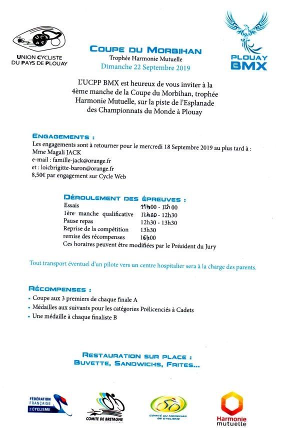 Les deux dernières compétitions de la Coupe du Morbihan 2019 arrivent en septembre dont celle de notre club.