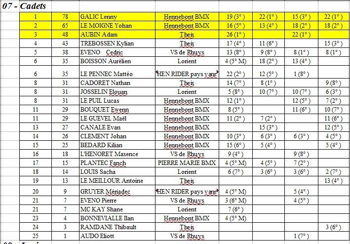 - en cadet : Adam AUBIN finit 3ème avec seulement 2 courses sur 4. Kylian TREBOSSEN finit 4ème et Nathan CADORET 8ème.