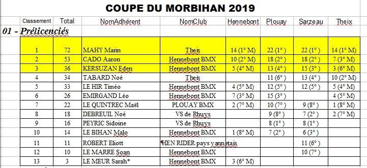 A l'issue de cette journée, le classement général de la Coupe du Morbihan a eu lieu: